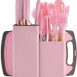• 👏QUALITY: Superior high carbon stainless steel blades for precision which ensure the blades retain their ultra-sharp edge and accuracy precise for cutting food. 19Pieces, Kitchen Utensils and Knife Set with Block, 9 Piece Silicone Cooking Utensils Set 5 Piece Sharp Stainless Steel Chef Knives Scissors Whisk Tongs and Cutting Board (19 in 1) (Pink)