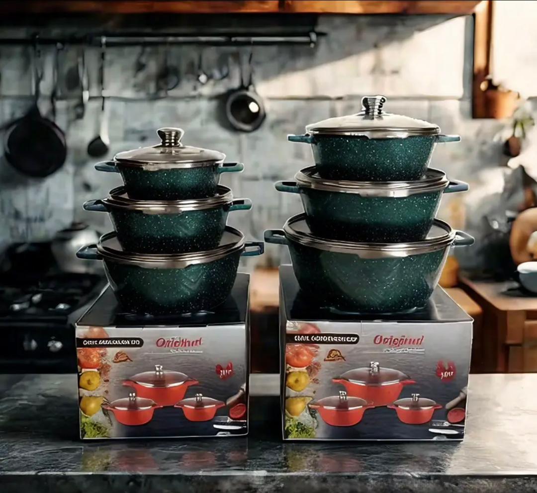 - This aluminum non-stick cookware sets, which comes with a fry pan, 5 quart Dutch oven, 1 quart sauce pan, and 1.4 quart sauce pan, is ideal for all kinds of cooking.