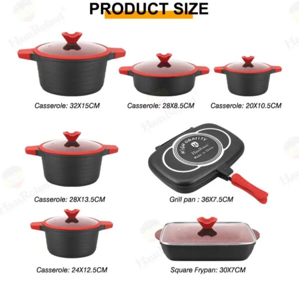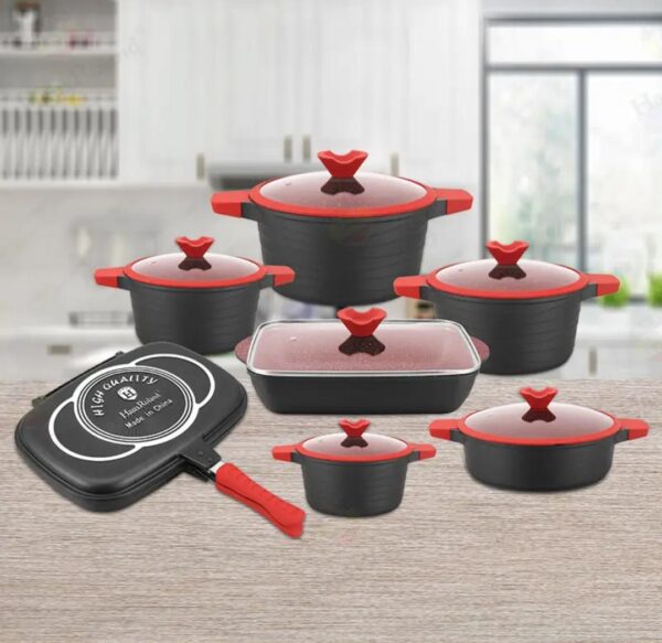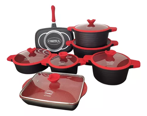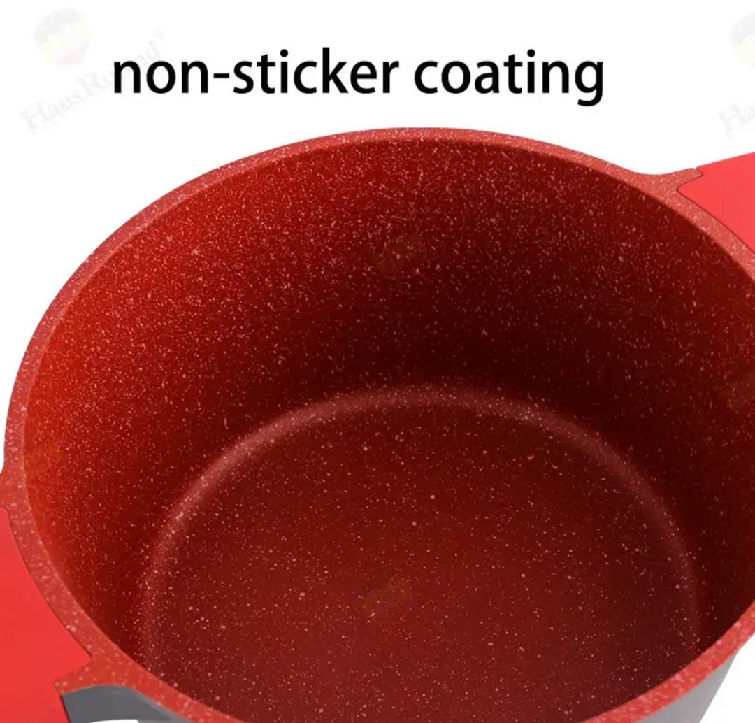 - This aluminum non-stick cookware sets, which comes with a fry pan, 5 quart Dutch oven, 1 quart sauce pan, and 1.4 quart sauce pan, is ideal for all kinds of cooking.