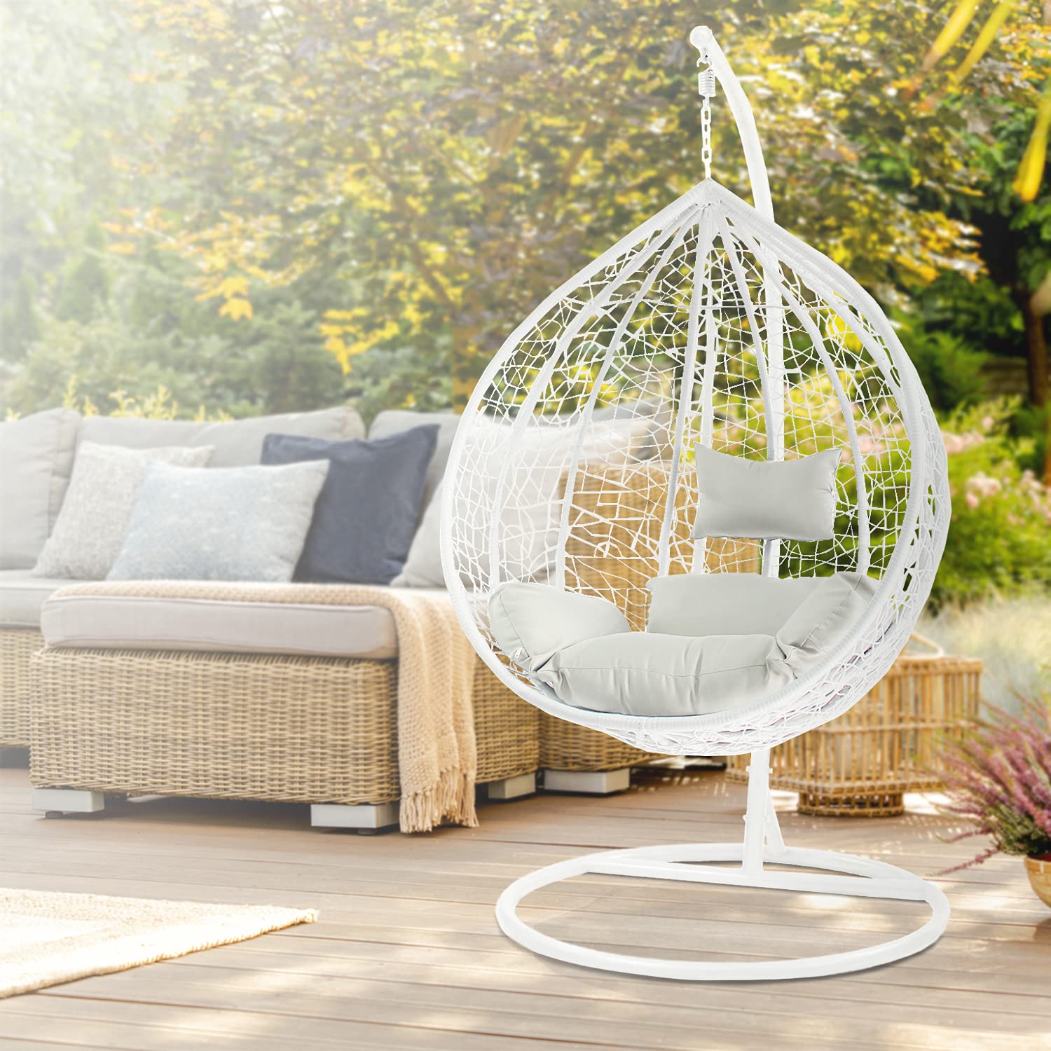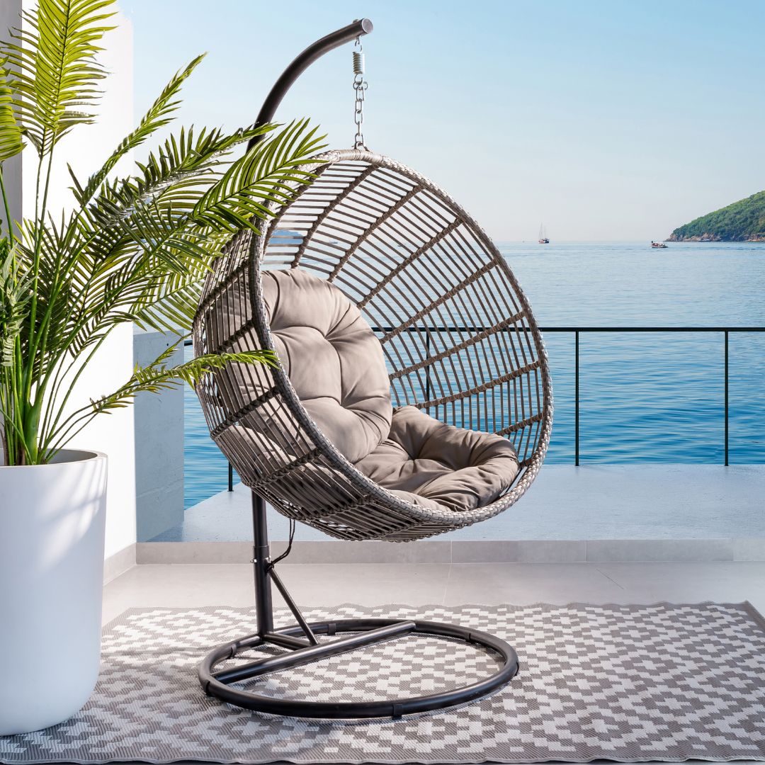 - Our egg swing chair comes with a soft cushion to ensure high-level comfort, which helps you relax yourself freely, the design has been tested to fit the curve of the human body and reduce fatigue. A big cushion designed with high backrest and armrests that cuddle your body fully to provide comfortable experience.