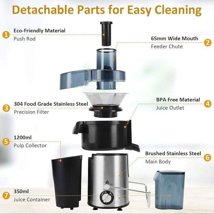 - 65MM Wide Mouth: Allows whole fruits and vegetables to be juiced without the need for slicing, saving you time and effort.