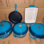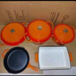- HARD-COAT ENAMEL – Featuring hard-coat enameled interiors and exteriors, this beautiful cookware set easily transitions to serving ware. The enamel coating is durable and resists chipping and scratching. And, it makes clean up simple, with most messes wiping away thanks to its nonstick properties. Plus, the enamel coating is perfect for braising your favorite cuts of meat.