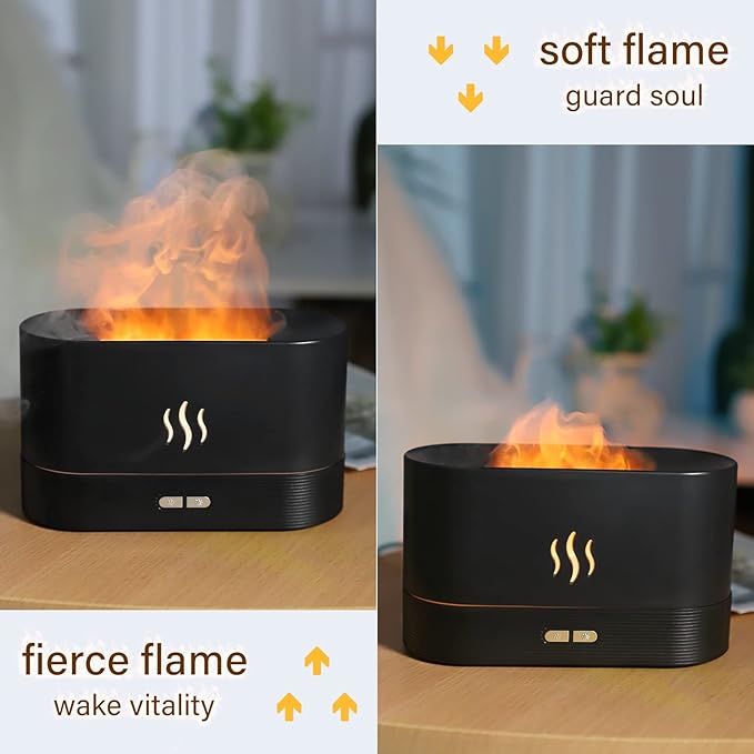 - With its adjustable soft and ferocious flame settings, this essential oil diffuser is ideal for ultrasonic aromatherapy. It gathers light and mist to create a realistic flame effect. Add three to five drops of your preferred essential oils to help hydrate your skin, ease fatigue, and create a relaxing atmosphere.
