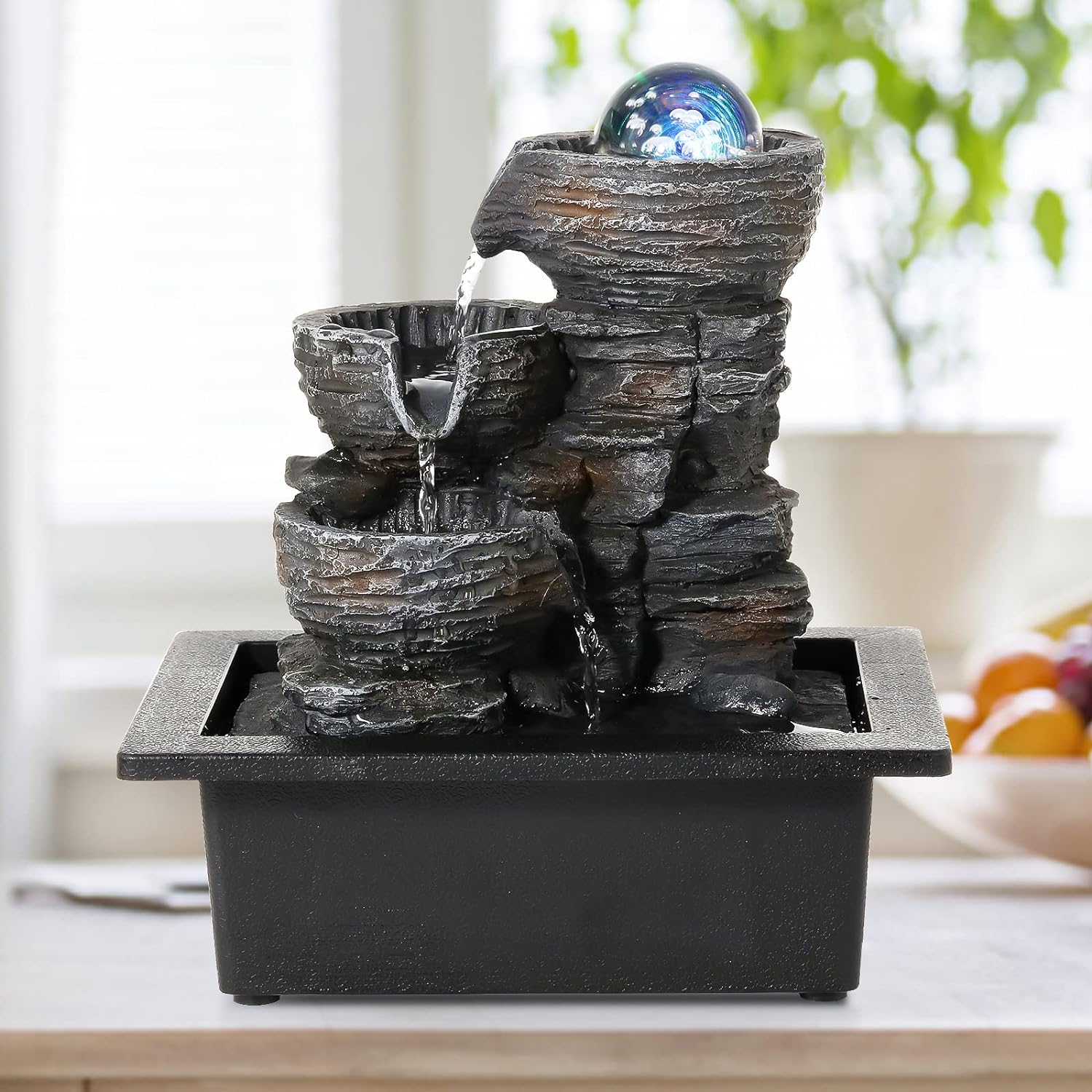 - Bring the tranquilly of outdoor fountains indoors if you have appreciated their beauty! Enjoy the peace that this lovely water fountain brings when you place it in your yard or living room! Your body and mind will undoubtedly be soothed by this lovely fountain!